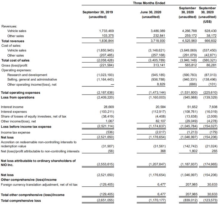 蔚来三季度营收毛利率均超预期,预计Q4营收62.6-64.4亿元人民币