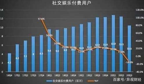 TME社交娱乐付费用户变化。图片来自于异观财经。