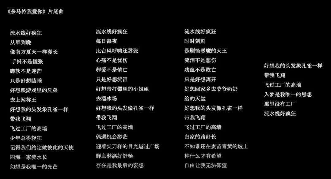 杀马特有自己的讲究,那些讲究是不能丢的。他们用一些装饰性很强的文字,比如写的歌词:“迎着尖刀样的目光越过广场,鲜血淋漓好舒畅”“好想我的头发像孔雀一样带我飞翔,飞过工厂的高墙”。
