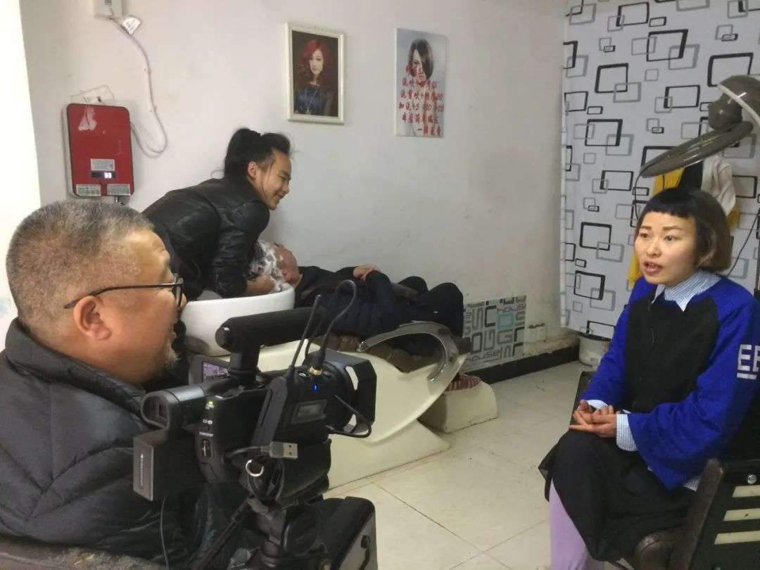 ↑ 2018年3月,重庆,李一凡在安晓惠的理发店内采访