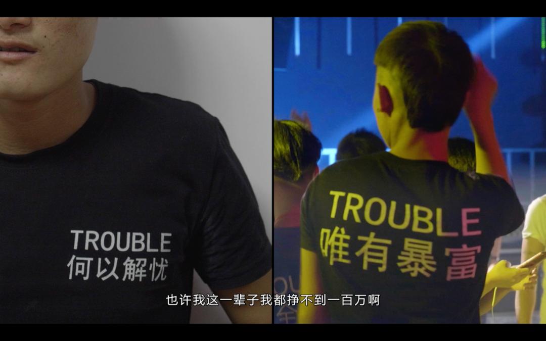你看那些小孩穿的衣服,“何以解忧,唯有暴富”。打工挣的钱不知道能够解决什么问题,除了暴富,没有办法改变命运。大部分小孩都没有目标,所以唱歌喝酒打游戏,有些还赌博。