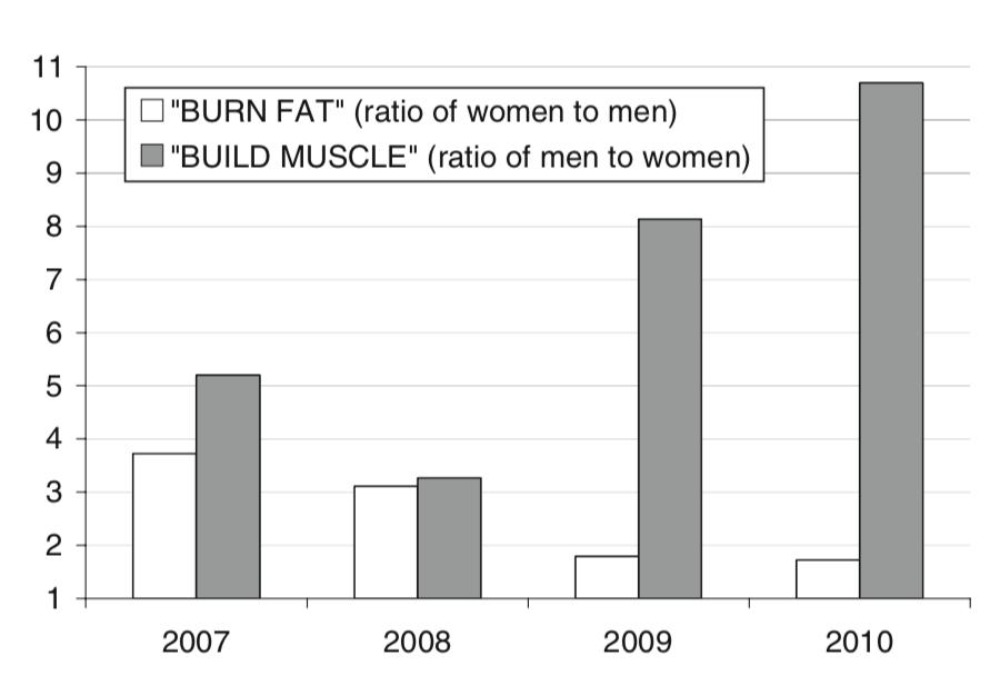 2010年发表在美国性别学术期刊Sex Roles的一项研究发现,男性健身目的倾向于增肌而不是减脂,因此更倾向于高强度的抗阻力训练,而不是主打心肺功能的团操课。