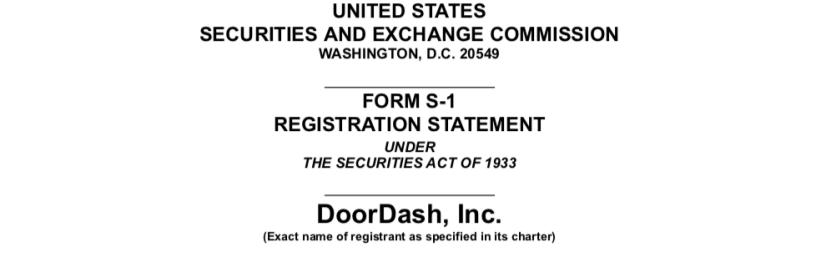 据获悉,美版最大的外卖配送平台DoorDash于美东时间11月13日正式向美国证券交易委员会(SEC)递交S-1招股书,预计12月中旬以“DASH”为股票代码登陆纽交所。