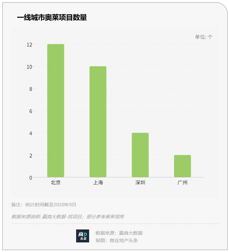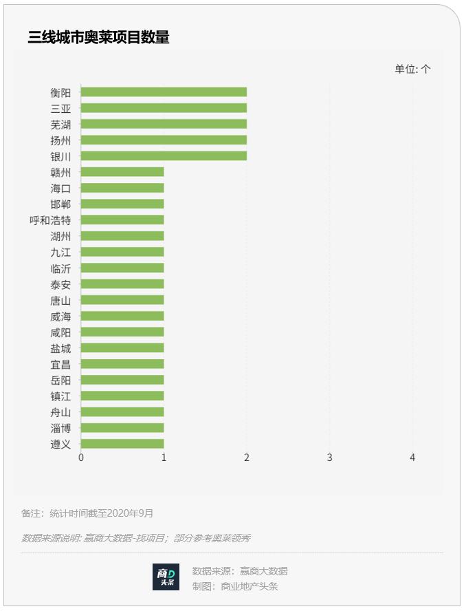 而将眼光投向更广阔的四五六线时,会发现,统计列入的城市均仅有1个奥莱项目,且这些项目多为本地开发商操盘运营。