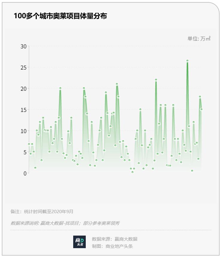 城市奥莱:面积多在5万㎡以下,位于二线城市居多