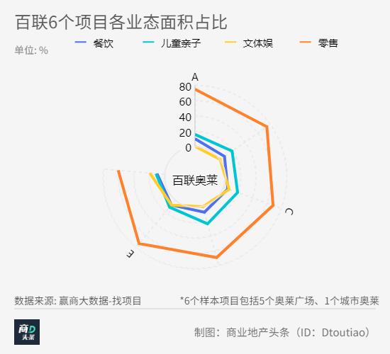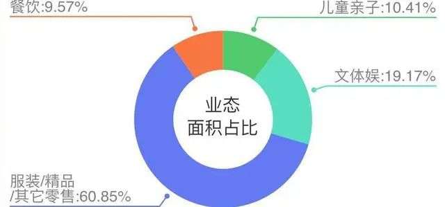 *业态上,借助赢商大数据,商业地产头条选取了34个样本,呈现的特点是:零售占比多在70%-80%,且以折扣名品为主;餐饮在5%-15%,儿童亲子20%以下。