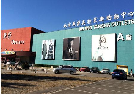“同国外的许多折扣店一样,燕莎奥特莱斯店的外墙上悬挂着多个巨幅广告牌,一个上千平 方米的金色巨大帷幕徐徐升起……”2002年12月17日,北京燕莎奥莱开业前夜,北京晚报来了场探店式报道。