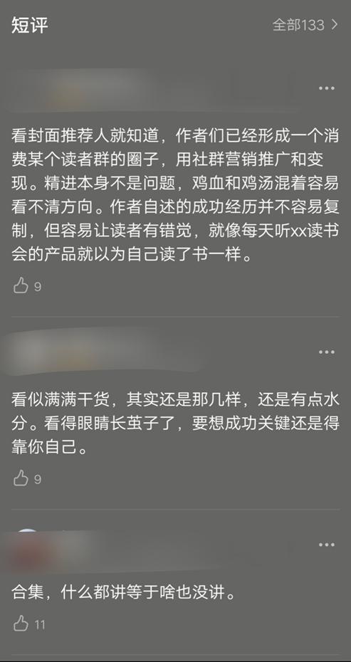 之后,我特意买了几本这位讲师写的书,买了几门她售卖的课,看完听完,还是那个味。