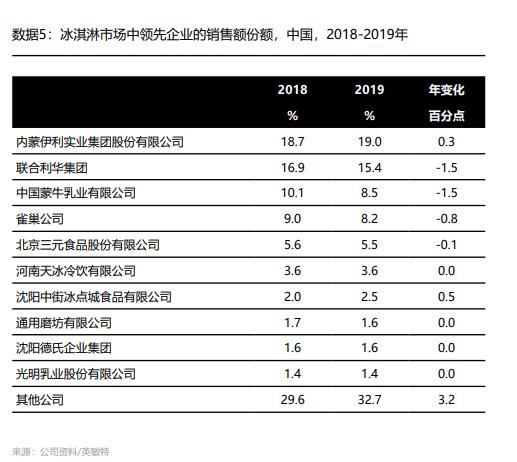 目前,希望在中国冰淇淋市场拿下更多份额的明治确实还有很大成长空间。小食代从英敏特处拿到的数据显示,按销售额份额计算,2019年中国冰淇淋市场的领先企业主要为伊利、蒙牛和光明这类本土乳企,以及联合利华、雀巢和通用磨坊等外资企业。