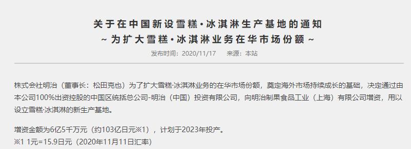 明治则在通报中指出:“鉴于目前良好的销售势头以及今后还将持续扩大的中国雪糕·冰淇淋市场,明治集团希望通过强化生产体制,扩大销售区域。”同时,新厂投建也为其“实现海外市场的持续成长打下坚实基础”。