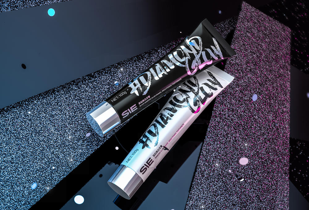 SIE是英文smile is energy的缩写,品牌团队希望与行业中传统的“白大褂”形象相区别,包装设计上加入镭射和金属元素,在视觉上诠释“color your smile, smile is energy”的精神。