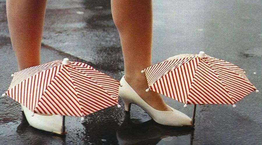 这些珍道具涉及生活的方方面面。在出行方面,考虑到大雨天却不得不出门的心情,川上做了一系列的尝试:如果你害怕鞋子进水,可以试试专门为鞋子设计的鞋伞;如果想与湿漉漉的世界隔离,夸张的全身雨伞就能派上用场。在饮食上,如果怕吃饭时头发沾到面汤里,可以戴上造型奇特的吃面神器;如果怕食物烫口,就可以使用自带风扇的筷子。