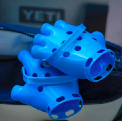 因其舒适性和功能性而广受人们喜爱的卡骆驰(Crocs),早已是许多高定时装界设计师积极借鉴、合作的对象。从其与巴黎世家联名发布的 FOAM 洞洞鞋,到迅速售罄的波兹·马隆(Post Malone)合作款。但为什么我们对洞洞鞋的喜爱仅限于脚部呢?贝尼代托发问说。于是,第一双卡骆驰手套面世了。