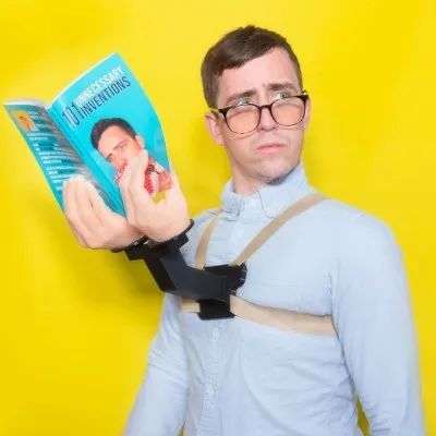 作为一位资深产品设计师,以及“不必要的发明”(Unnecessary Inventions)项目的负责人,贝内代托的工作就是创造一系列无人需要的、试图解决根本不存在的问题的产品:专门为装披萨片设计的、带有透明口袋的裤子;太阳能供能的T恤;安装在肩膀上的人体后视镜、帮你完成不想用手指完成的事情的手指延伸器……等等。