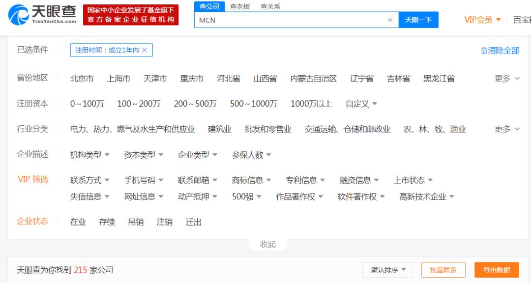 据天眼查APP数据显示,据不完全统计,我国目前从事网红相关业务的企业有千余家,其中,成立于2017年之后的相关企业占比约50.42%。而最近一年成立的MCN公司,在天眼查APP页面显示上更是高达215家。一面是数量庞大的MCN公司,一面是带货需求即刻的品牌商,这或许也意味着B2B创业机会。