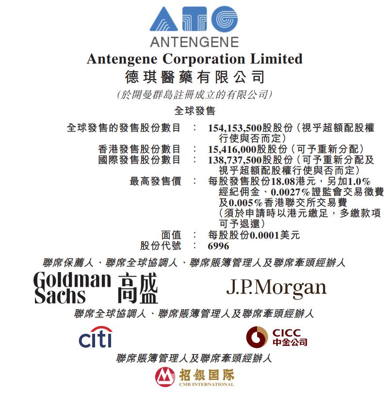 「德琪医药」此次全球发售共计154,153,500股股份,每股发售股份发售价为18.08港元。经扣除就全球发售已付及应付的包销费及佣金以及估计开支后,公司自全球发售所得款项净额估计约为2,635.9百万港元。公司于香港公开发售获大幅度超额认购,接获有效申请为初步可供认购发售股份总数的约264.76倍,而国际发售亦获超额认购约13.5倍。香港公开发售及国际发售最终发售股份数目分别为77,077,000股及77,076,500股,各占任何超额配股权获行使前全球发售项下初步可供认购发售股份总数的大约50%。