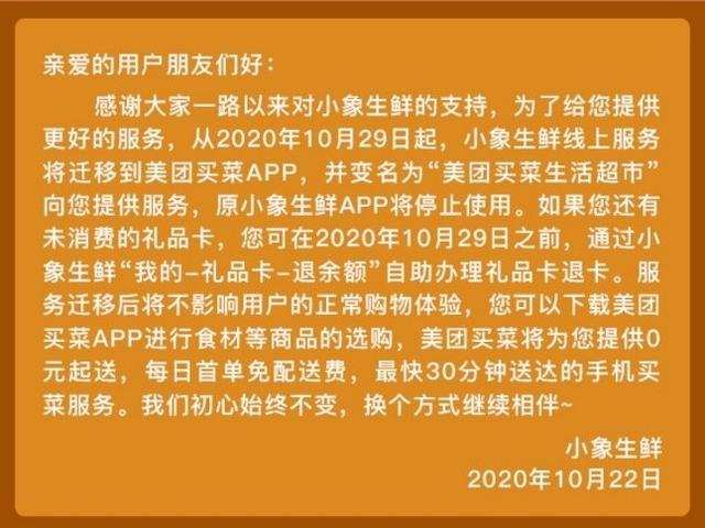 据悉,11月13日,小象生鲜宣布其线上服务将迁移到美团买菜APP,原小象生鲜APP将停止使用,而小象曾经在华东地区经营业绩最好的一家门店,被盒马成功拿下,即将在本月底被改为一家新的盒马门店。而这距离9月7日美团宣布方庄店停止运营的时间才过去两个月。
