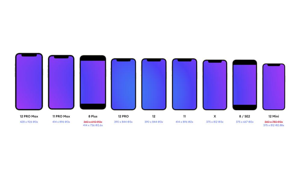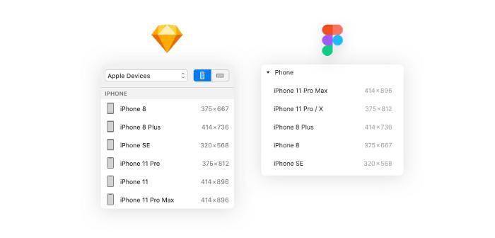 如果你是一个从事移动应用开发(或响应式网站)的设计师,你可能知道,已经有越来越多的苹果移动设备可以选择。这是目前在Sketch和Figma中Artboard预设的模板: