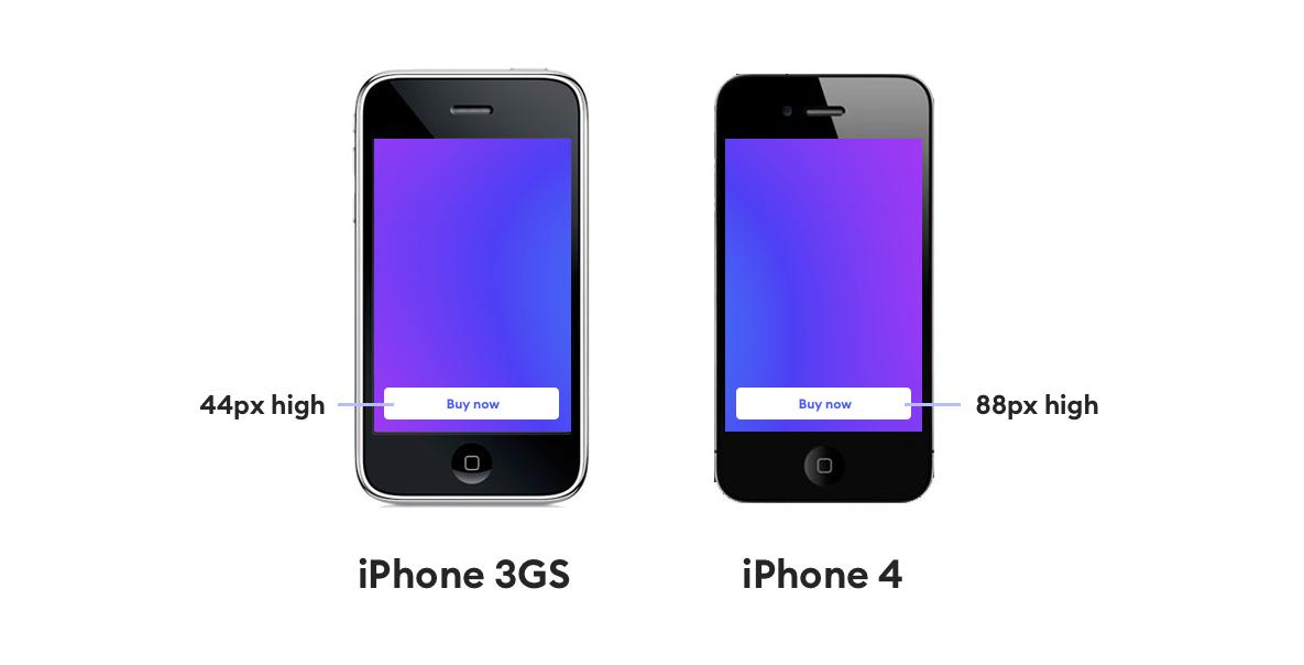 一个高44点(在1x时也是44像素高)的按钮在2x时仅是88像素高。
