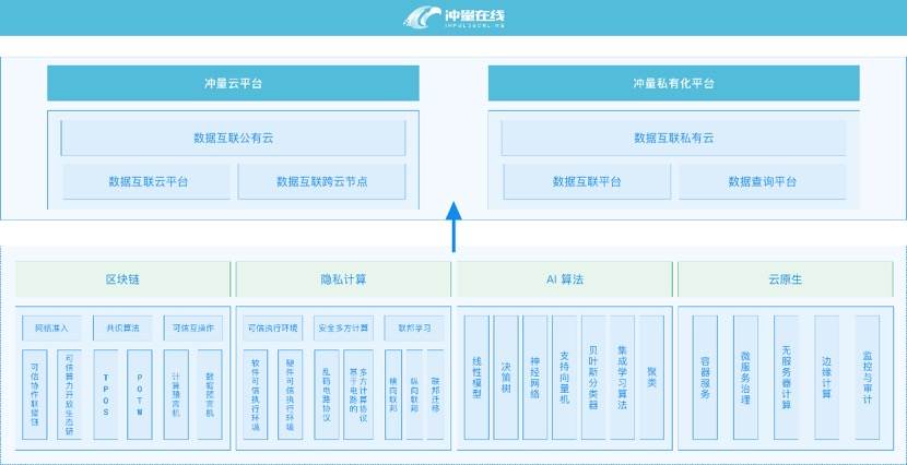 更底层的技术上,「冲量在线」采用区块链、隐私计算、人工智能以及云原生技术进行支持。区块链不可篡改、可追溯、公平化权益等特性保证数据计算过程的可信,且未来可能有利于数据要素的清算;隐私计算包含可信执行环境、安全多方计算和联邦学习三类技术,主要解决隐私数据的安全问题;机器学习算法保障了数据挖掘的深度与效果;云原生则让产品更易开发、更易部署、更易运维。