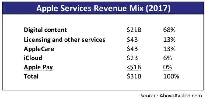 分析师 Neil Cybart 在 Above Avalon 博客上对苹果服务业务分析后,大致估算出 2017 年 AppleCare 业务大概有 40 亿美元的收入,占服务总收入的 13%,远超 iCloud 和 Apple Pay 带来的收入。