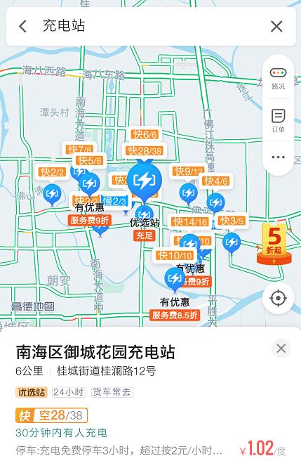 周末,佛山禅城、南海大量充电桩是空闲状态 图片来源:某软件截图