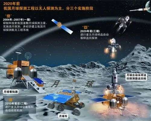 中国探月工程的“无人月球探测”阶段分为“绕、落、回”三步走,目前绕月和落月任务已经在前几个月球探测器的出色表现中圆满完成。