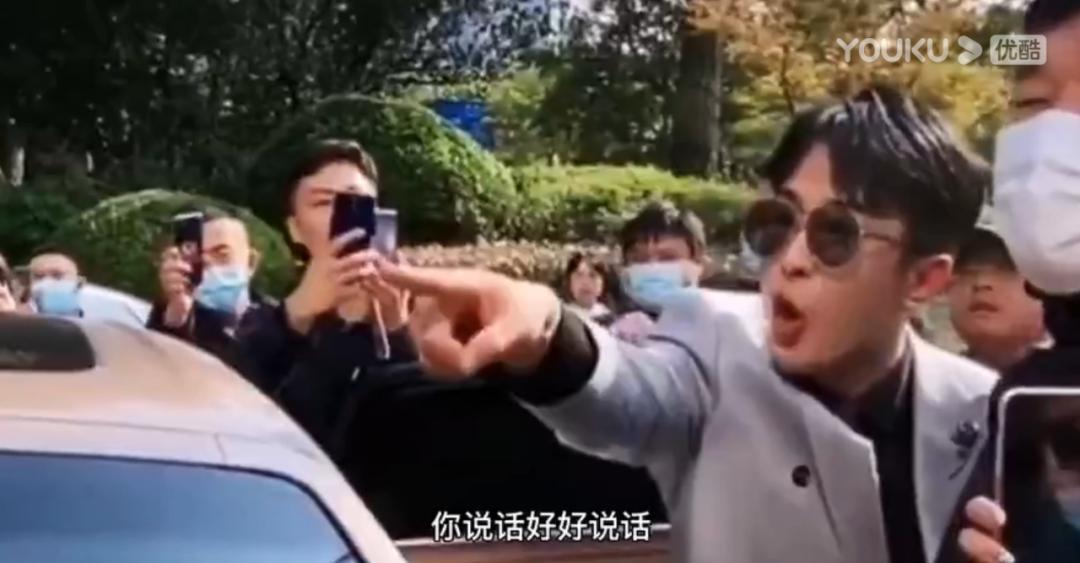辛巴怒不可遏地指向那个酒店工作人员,“你是干啥的,你好好说话,指你怎么的”。