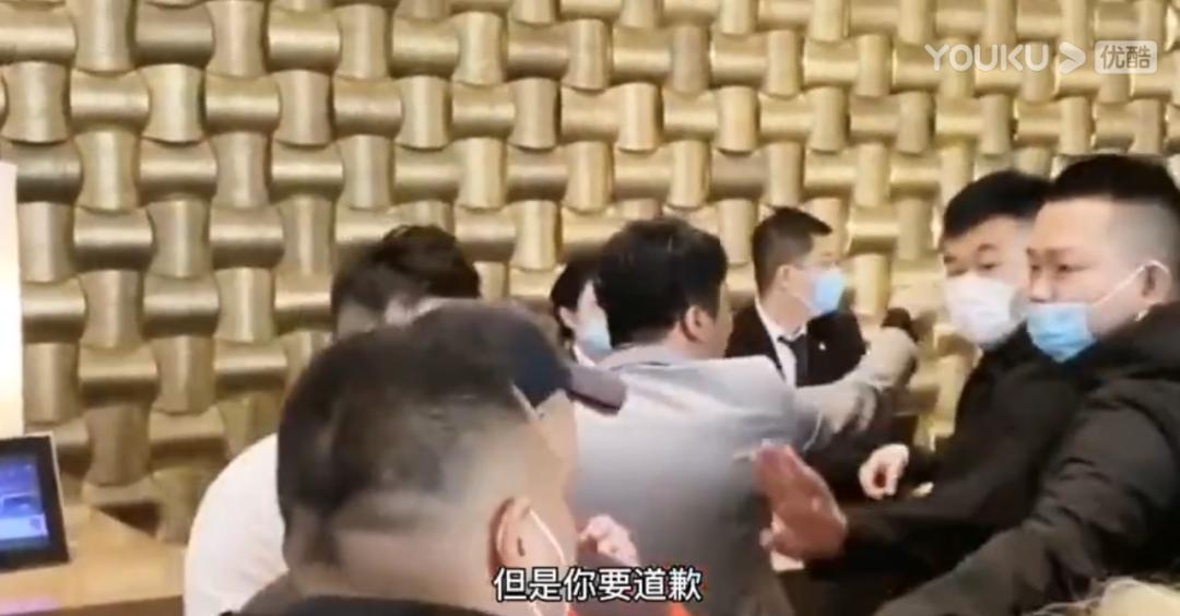 进行完这段东北风的话后,他又率众冲进了酒店大堂,对酒店的管理层施压,“他必须道歉,他侮辱人格”。