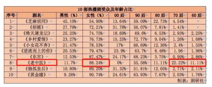 大部分中老年观众的“看剧媒介”依然是传统电视,但他们中的一部分正在向网剧转移。例如,在视频网站上,观看《老中医》的60后、70后观众占比超过了30%。