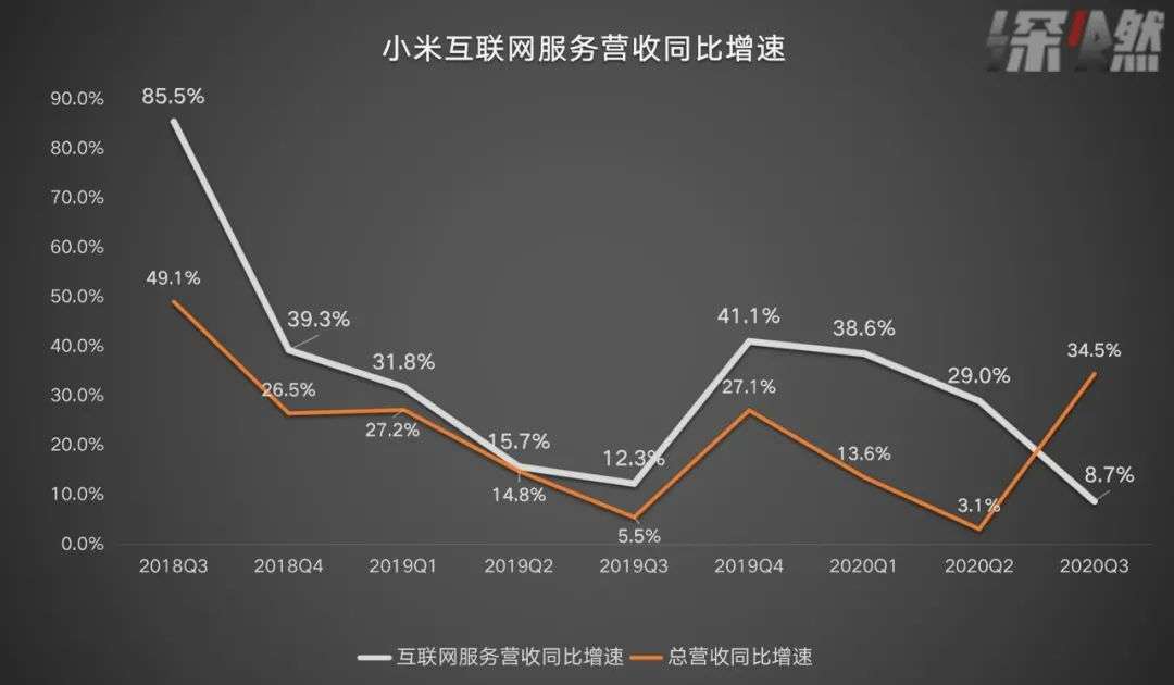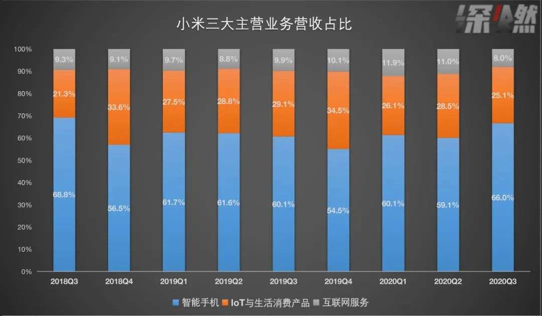 今年以来,小米手机这个古老的引擎持续发力,营收占比都维持在59%以上,loT和互联网业务的增长颓势就显现出来了。