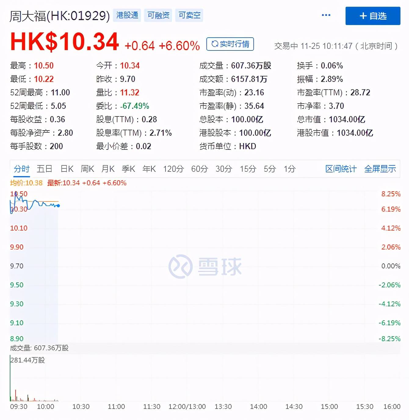 北京时间11月24日,香港著名黄金珠宝企业周大福于港股盘后公布了截至9月30日止6个月的业绩报告。对比去年同期的数据来看,这次财报仍有所不足,但对比年初已经有复苏的迹象出现。财报公布翌日,周大福股价开盘涨6.6%,截止发稿报10.34港元。
