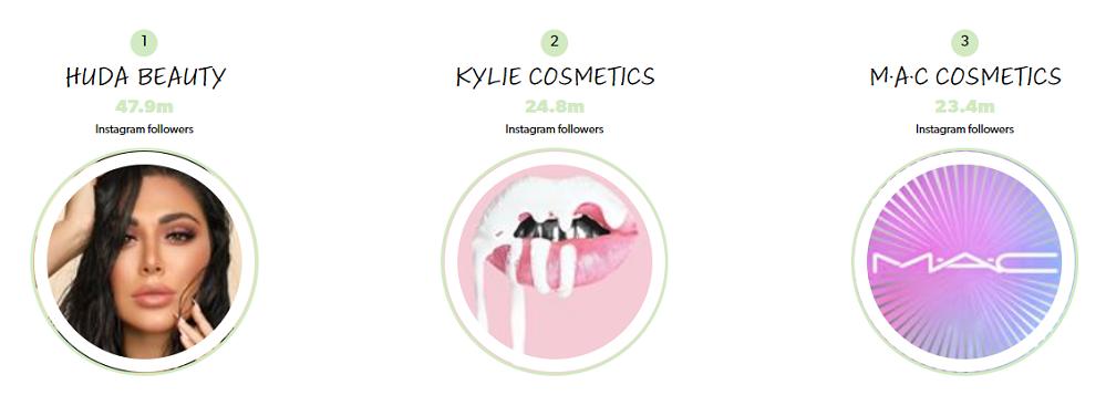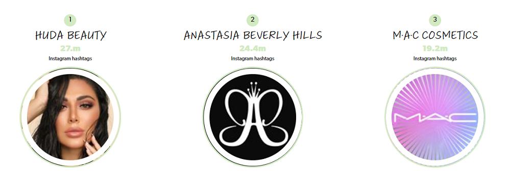 而在话题标签量排名中,排在前三的品牌Huda Beauty、Anastasia Beverly Hills、MAC Cosmetics,与第一季度排名是完全吻合的。在Instagram有超过2700万人发布有关Huda及其产品的信息,同比第一季度增加了约200万。