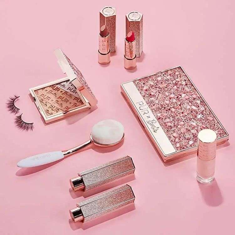 不仅如此,今年PÜR推出与60周年的芭比娃娃联名限定彩妆系列,产品包装以粉丝渐变亮片为主,受到不少关注。PÜR是美国小众彩妆品牌,针对不同肤色人群配制,产品不含香精、酒精、滑石粉。