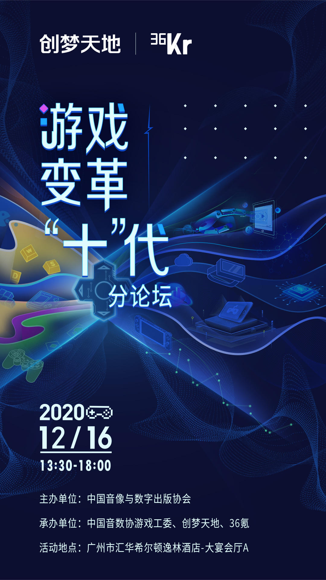 12月16日,中国音像与数字出版协会将作为主办单位,在广州黄埔区举办中国游戏产业年会。届时,中国音数协游戏工委、36氪与创梦天地将作为“游戏变革‘十’代”分会场的承办方,与各大游戏企业共同回顾过去十年行业的进程,以及未来十年游戏产业化的新机遇。