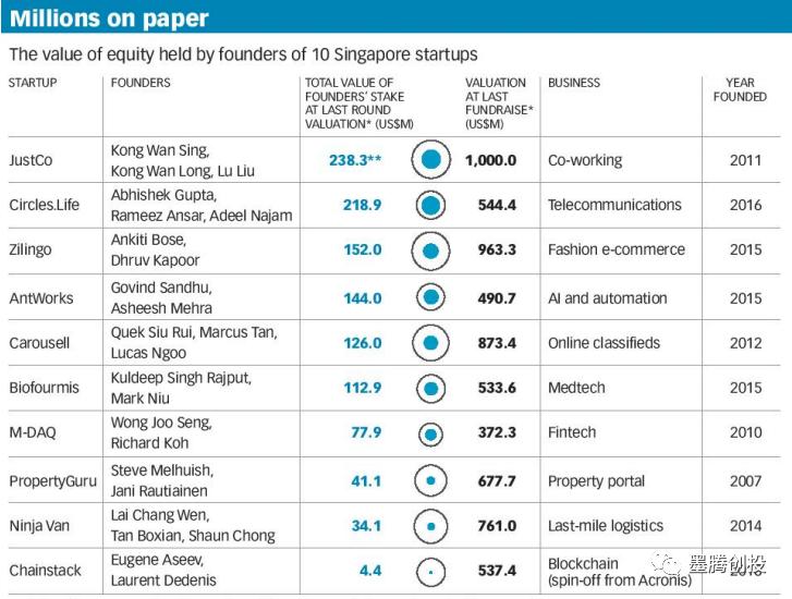收益的关键因素往往是初创公司能否通过首次公开募股(IPO)或交易出售以高估值退出。而最近新加坡的《商业时报》也对本地和区域一些初创公司创始人的个人财富做了一份总结,我们也可以通过这些信息来一窥东南亚的创投账面回报生态。