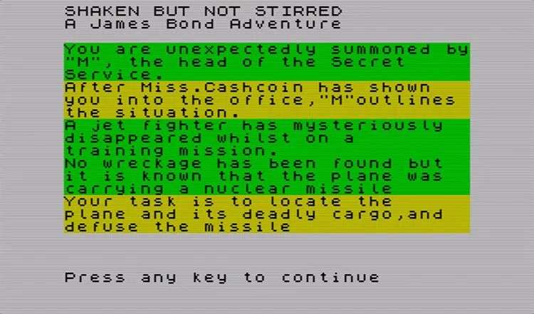 《Shaken But Not Stirred》:第一款詹姆斯·邦德题材电子游戏,1982年发售于ZX Spectrum平台