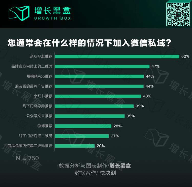 这个结果也与我们的认知一致:品牌方的裂变营销活动是最高效的私域导流方式。而常见的DM单加粉率也不过10-20%,而最近火热的朋友圈广告,添加一个企业微信的成本高达20-30元。