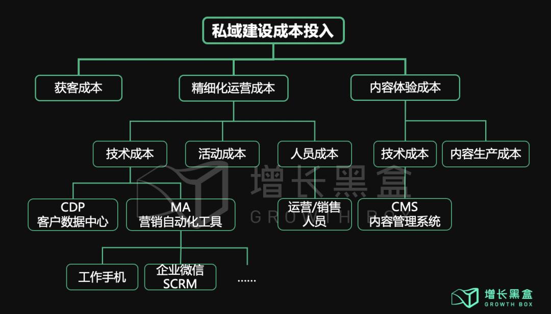 企业的自身体量越大,运营的复杂程度也会指数级增加,提升私域规模的单位成本就越高。