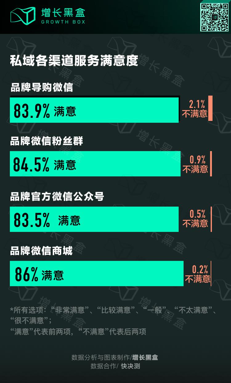 首先,一个好消息是:超过8成的美妆消费者对品牌方在微信私域提供的服务是满意的。