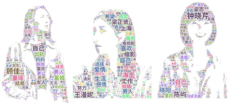 可以发现,受众在认知三位主角时感受到了人物的生活困境与努力挣扎——如“王漫妮”所面临的“工作”“现实”,她做出的“努力”“选择”以及她追求的“爱情”“结婚”;又如“顾佳”作为一个“独立”“完美”的“老婆”“妈妈”所珍视的“孩子”“婚姻”以及所面对的“出轨”“离婚”。