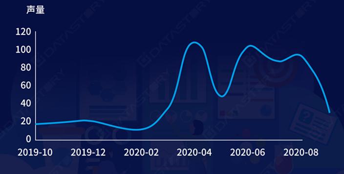 根据雷达数据显示,截至2020年9月,瑞幸的声量,在自曝财务造假后到达高峰,之后回落到常规水平,后又因为新品的推出,重新达到新的声量峰值。