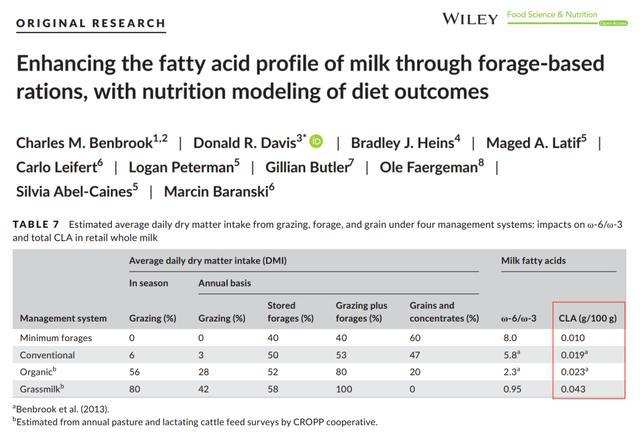 草饲奶在共轭亚油酸(CLA)的含量上高于普通牛奶
