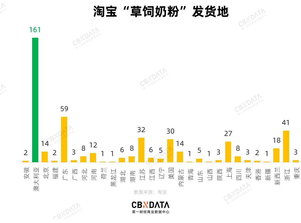 作为长年高居进口婴儿奶粉榜前列的国家,澳大利亚和新西兰均大力拓展草饲奶粉市场,并积极出口到世界各国。 C站查询淘宝数据得知,近500件“草饲奶”关键词的商品中,婴幼儿奶粉就有405件,占据整个大盘的80%,其中四分之一的商品自澳洲进口。