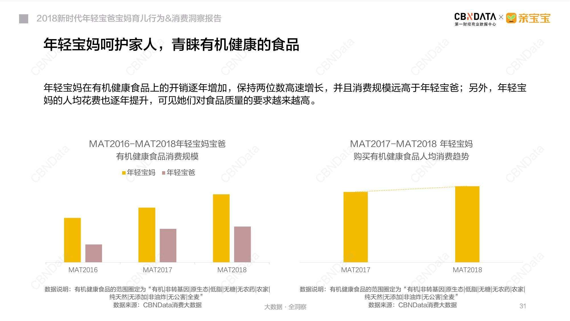 CBNData第一财经商业数据中心的报告显示,90后的宝妈在奶粉的选择上重视有机天然,舍得“剁手”—— 在2017年,奶粉的消费金额增速从之前的9%增为42%。其中,有机奶粉的增速为40%;进口品牌金额占比从2015年71.2%,升至2017年的83.9%。