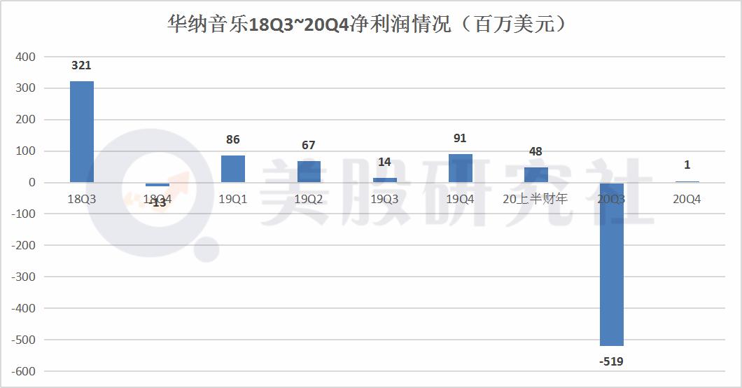 根据华纳音乐近两年的财报数据,2020财年的第四季度较上一季度净亏损扭亏为盈,同比跌幅也收窄,然而从2020财年全年的角度来看,华纳音乐截至2020年9月30日的2020财年净亏损为4.7亿美元,去年录得净利润2.58亿美元,同比下降了282%之多。可谓是成也流媒体,败也流媒体。