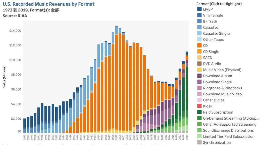 今年6月,时隔九年后华纳音乐再度登陆纳斯达克,在互联网的冲击下,曾经的五大国际唱片公司如今只剩环球、索尼与华纳三家,而实体专辑的销量还在连年下滑,恰逢流媒体平台的出现似乎给三大唱片公司打了一剂强心针,令他们起死回生起来。