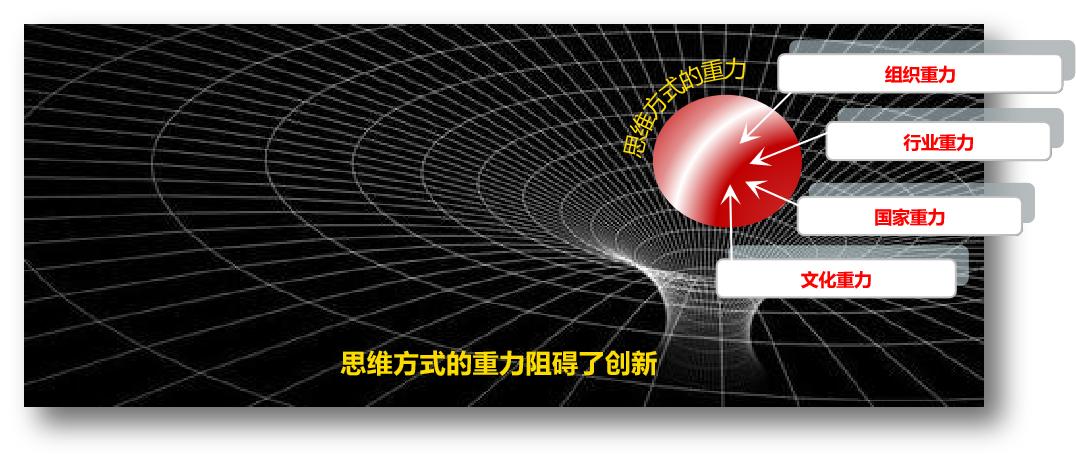 对于大多数组织来说,现实的问题是,一层一层的重力使得大家很难跳岀盒子去思考。跳出哪一个盒子才是真正要回答的问题,因为有个人重力的盒子、组织重力的盒子、行业重力的盒子、国家重力的盒子,还有文化重力的盒子。你走得越深入,盒子则变得越来越不容易被看见。