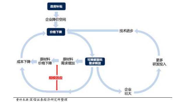 多位分析师认为,可降解塑料的发展路径与光伏产业相似,在政策刺激下,产业规模扩大、企业壮大、技术水平提升,进而带来成本下降。