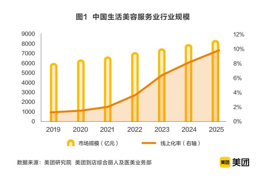 换一个角度来看,五年后的美业市场将会继续呈现爆发态势,根据美团到店综合丽人及医美业务部测算,预计2025年市场规模将达到8375亿元。而届时9.6%的线上化率,意味着行业内有近800亿元的市场红利,将被那些模式创新领先、互联网思维渗透率高的一部分企业抢先获得。